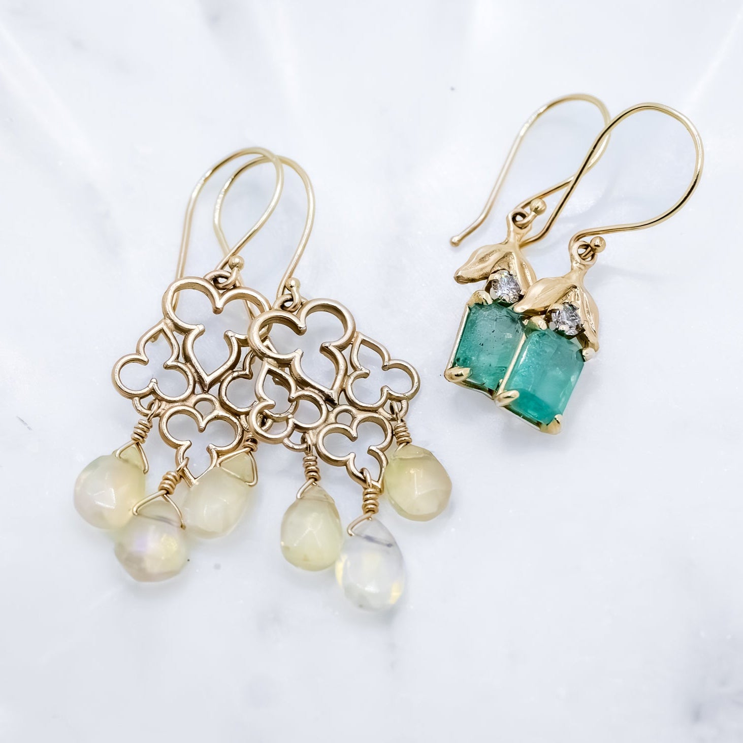 14k Gold Crescent Moon and Star Necklace w. Diamonds